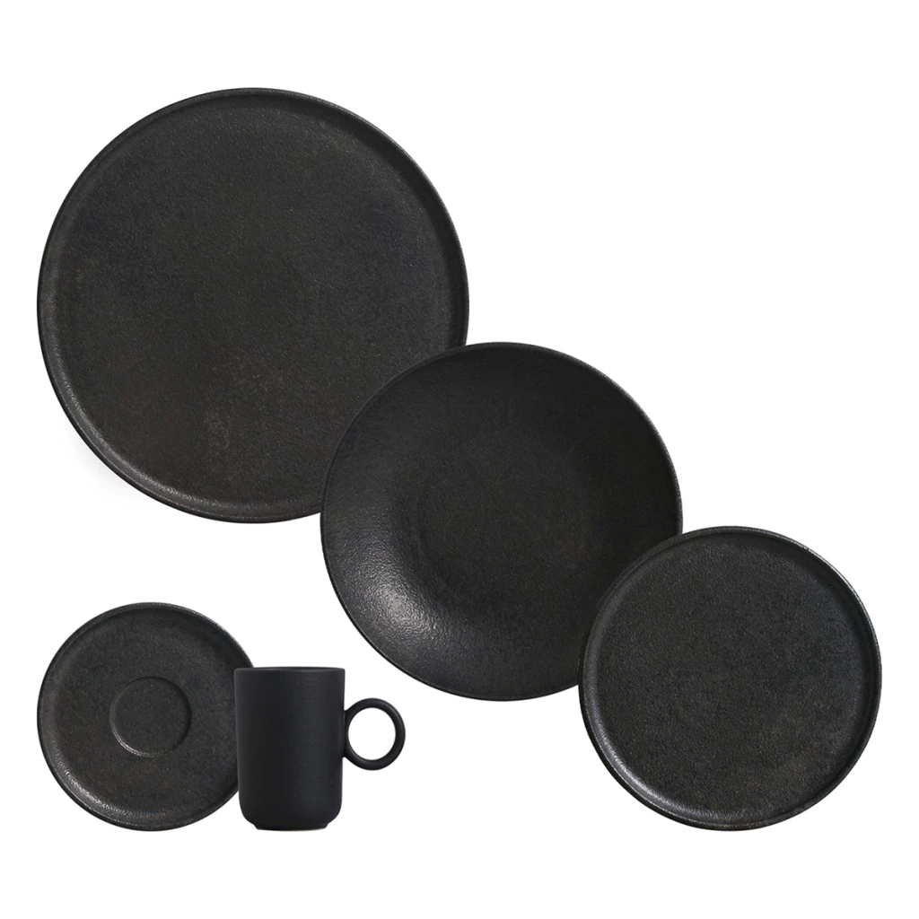 . Composição: 4 Pratos Rasos, 4 Pratos Fundos, 4 Pratos de Sobremesa, 4 Xícaras de Café e 4 Pires de Café;