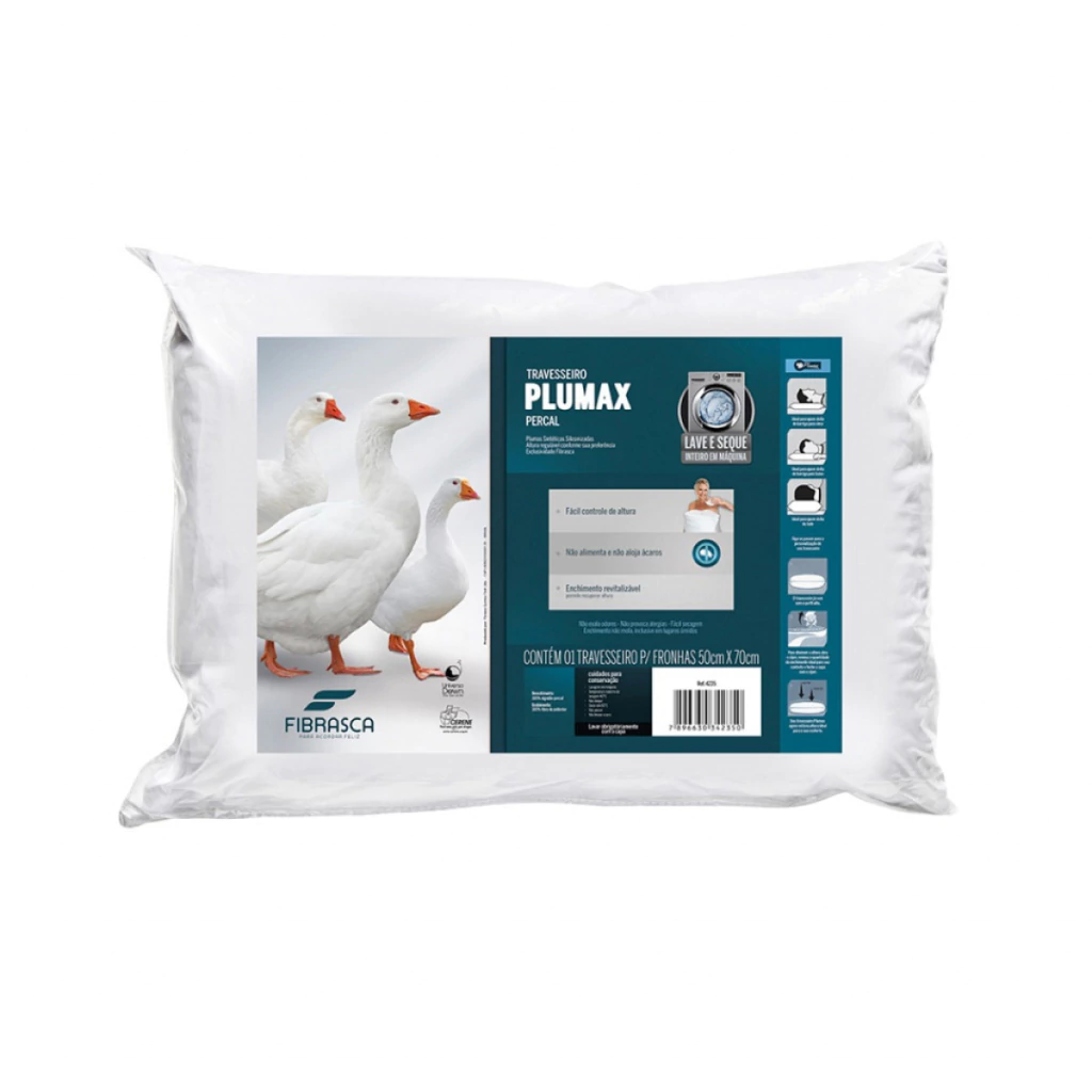 O Travesseiro Plumax Fibrasca traz a maciez e o conforto no toque e também a praticidade de um produto totalmente lavável em máquina. O enchimento com fibra siliconada em formato de pérolas, permite que o produto após lavado retorne ao seu formato original, diferente das fibras em manta comuns do mercado.